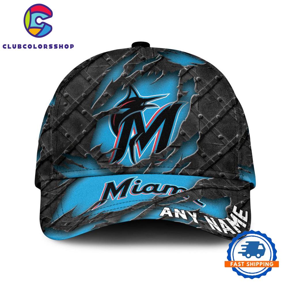 MLB Miami Marlins Custom Name Black Metal Design Classic Cap