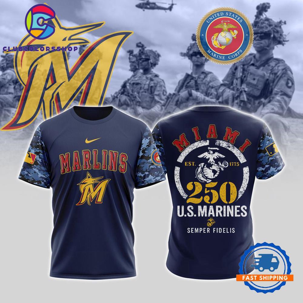 MLB Miami Marlins USMC 250th Birthday Design T Shirt, Hoodie, Sweatshirt