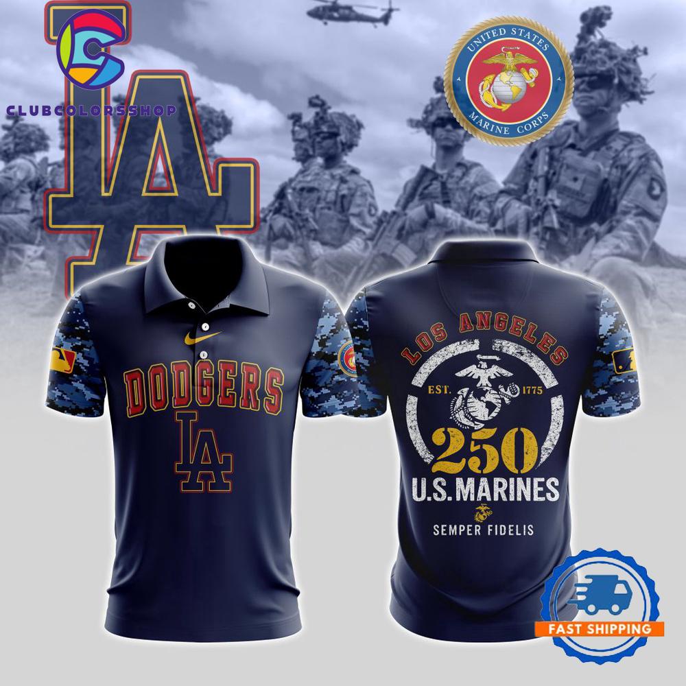 MLB Los Angeles Dodgers USMC 250th Birthday Design Polo Shirt