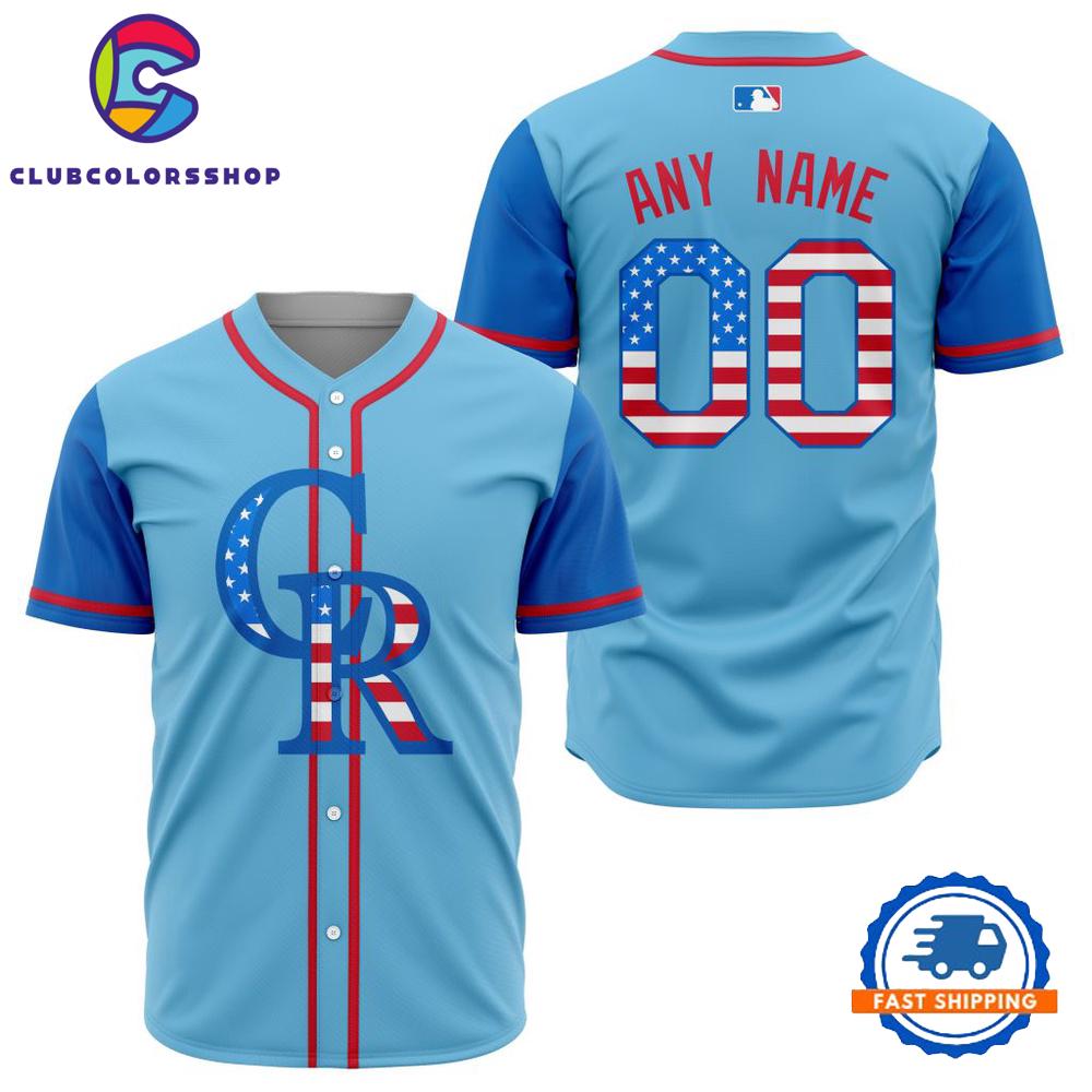 MLB Colorado Rockies Special 4th Of July Baseball Jersey The Baseball Jersey combines sporty style with everyday comfort. Featuring a button-up front, breathable fabric, and classic athletic design, it’s perfect for casual wear or game day. With a relaxed fit and bold prints, this jersey adds a trendy and sporty touch to any outfit.