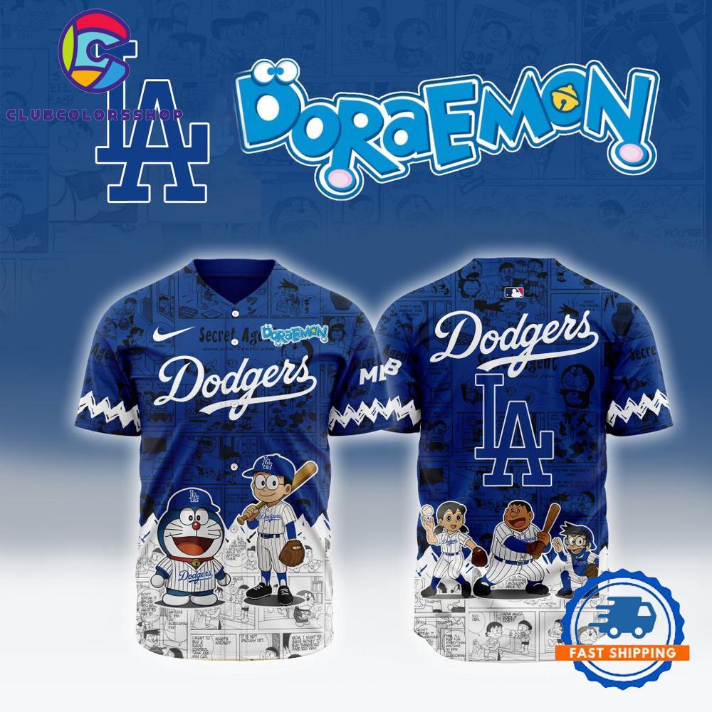 MLB Los Angeles Dodgers x Doraemon Design Baseball Jersey The Baseball Jersey combines sporty style with everyday comfort. Featuring a button-up front, breathable fabric, and classic athletic design, it’s perfect for casual wear or game day. With a relaxed fit and bold prints, this jersey adds a trendy and sporty touch to any outfit.