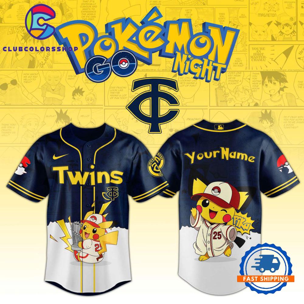 MLB Minnesota Twins Pokemon GO Night Design Baseball Jersey The Baseball Jersey combines sporty style with everyday comfort. Featuring a button-up front, breathable fabric, and classic athletic design, it’s perfect for casual wear or game day. With a relaxed fit and bold prints, this jersey adds a trendy and sporty touch to any outfit.