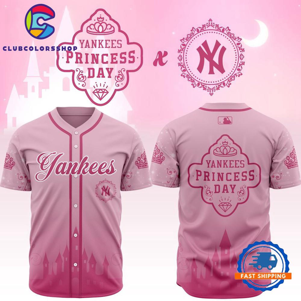 MLB New York Yankees Princess Day Design Baseball Jersey The Baseball Jersey combines sporty style with everyday comfort. Featuring a button-up front, breathable fabric, and classic athletic design, it’s perfect for casual wear or game day. With a relaxed fit and bold prints, this jersey adds a trendy and sporty touch to any outfit.