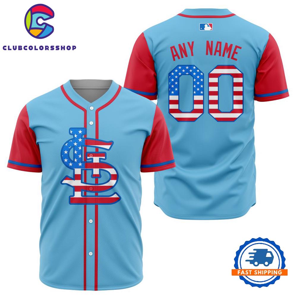 MLB St. Louis Cardinals Special 4th Of July Baseball Jersey The Baseball Jersey combines sporty style with everyday comfort. Featuring a button-up front, breathable fabric, and classic athletic design, it’s perfect for casual wear or game day. With a relaxed fit and bold prints, this jersey adds a trendy and sporty touch to any outfit.